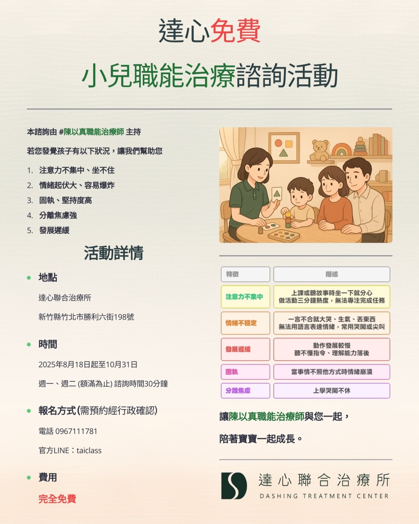 #達心聯合治療所 #達心兒童發展協會 #職能治療 #免費諮詢 #竹北